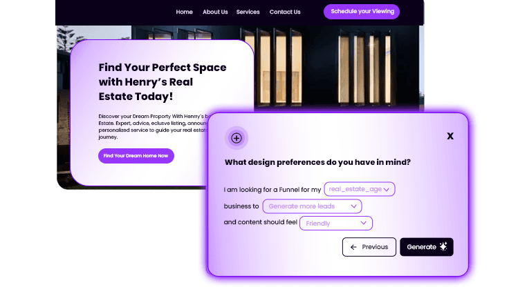 Creating sleek, high-converting pages for your funnels has never been easier. With Funnel AI, all you have to do is answer a few prompts about your business and industry and you’ll get a stunning digital presence ready to attract leads, drive conversions, and grow your business. All you have to do is customize it to match your branding.